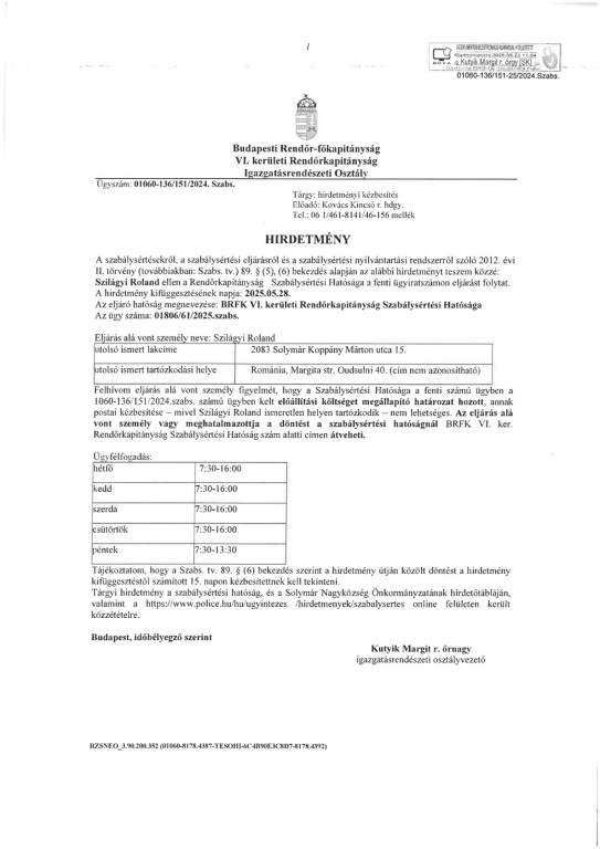 Hirdetmény - Budapesti-Rendőr főkapitányság