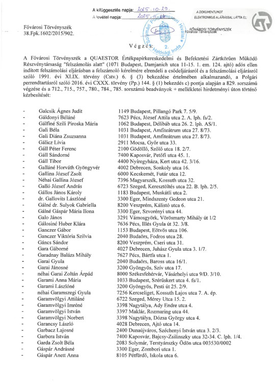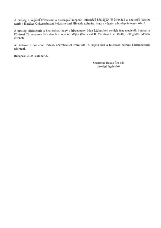 Hirdetmény - Végzés