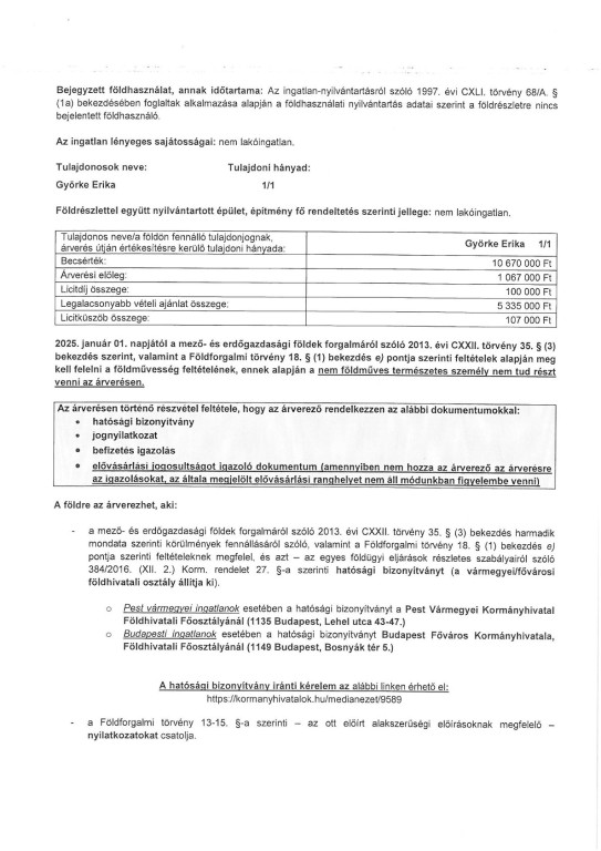 Árverési hirdetmény!