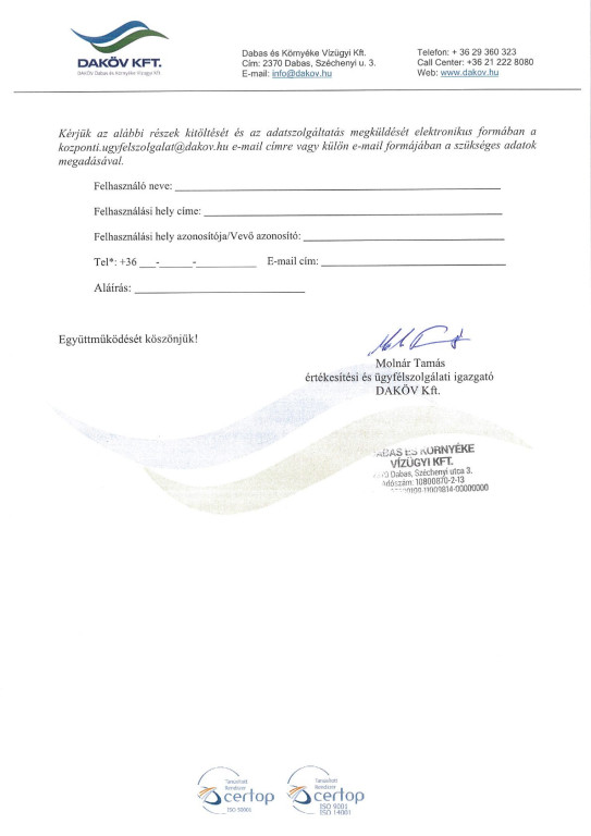 DAKÖV - Nem lakossági felhasználók felé figyelemfelhívás!