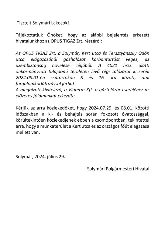 Hétfő: 8:00-12:30; 13:00-18:00 / Kedd: 8:00-12:30; 13:00-16:00 / Szerda: 8:00-12:30; 13:00-16:30 / Csütörtök: 8:00-12:30; 13:00-16:00 / Péntek: 8:00-13:30
