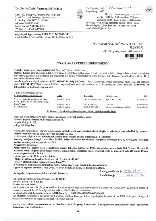Ingatlanárverési hirdetmény!